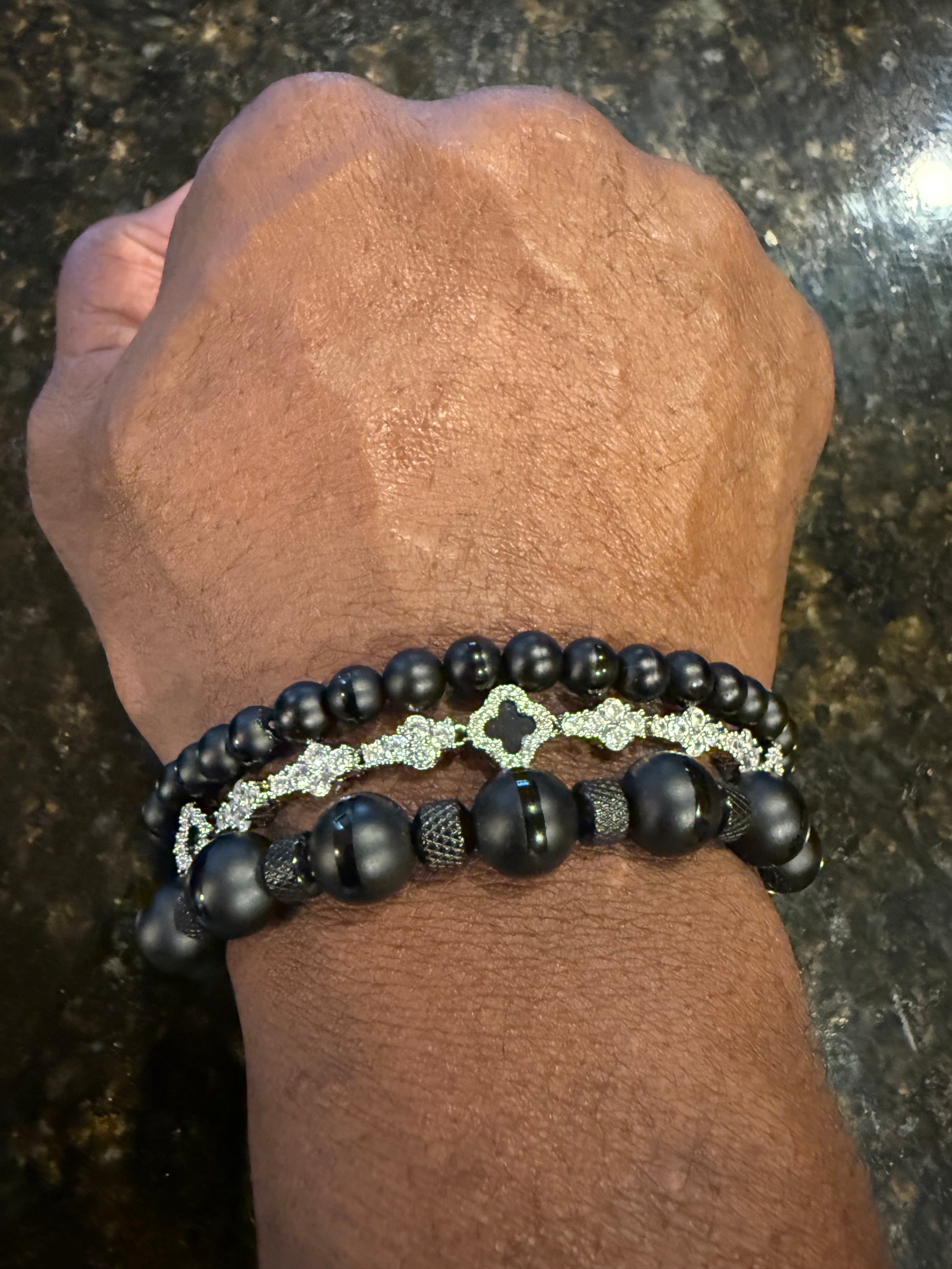 This exquisite 4 leaf clover cross bracelet is crafted with sparkling 18k cubic zirconia stones, radiating elegance and charm. Measuring 8 inches, it offers a comfortable fit while making a bold statement.