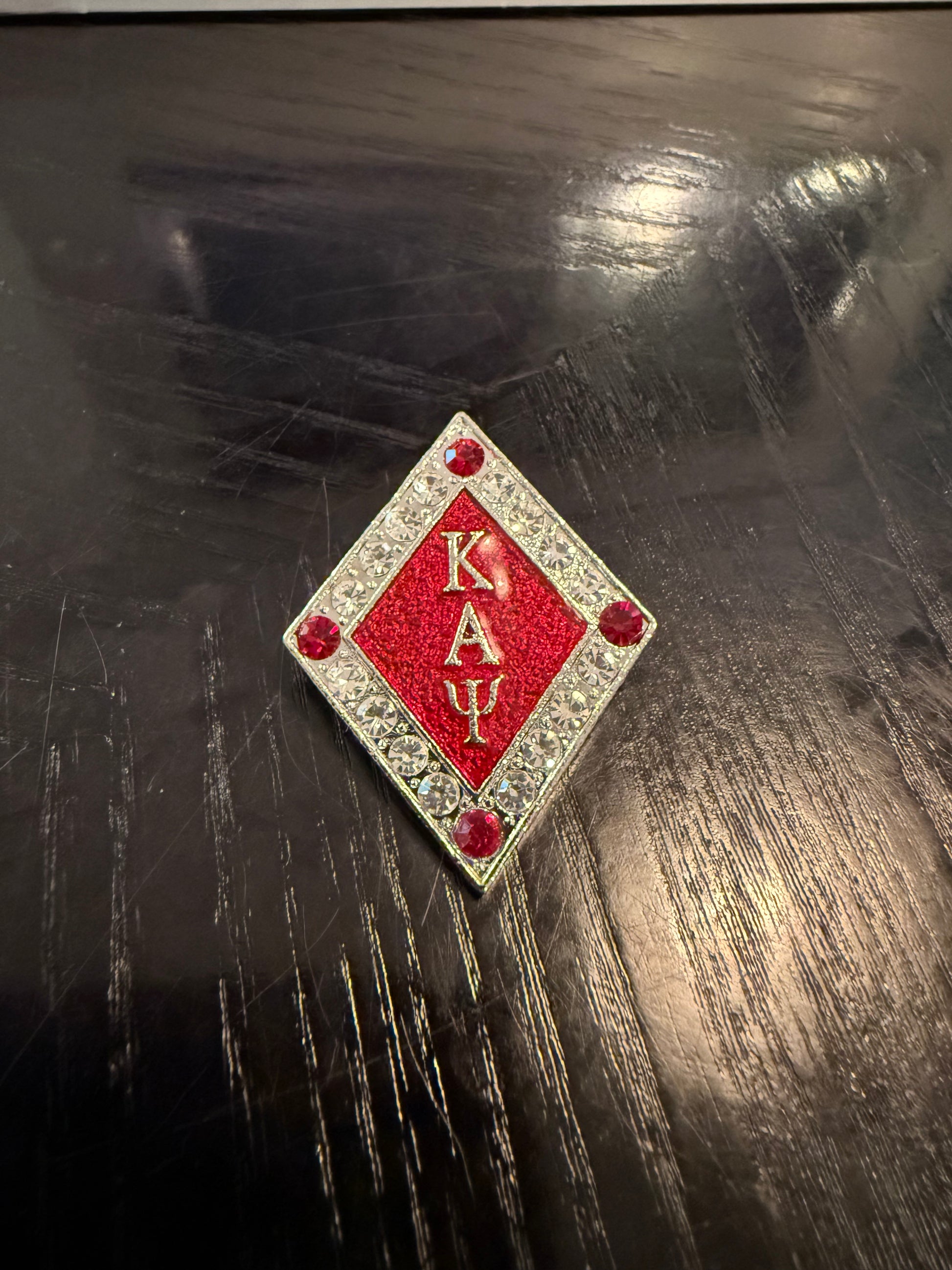 Show your Kappa Alpha Psi pride with the Crimson Lapel Pin, featuring a sparkling diamond set against deep crimson tones.