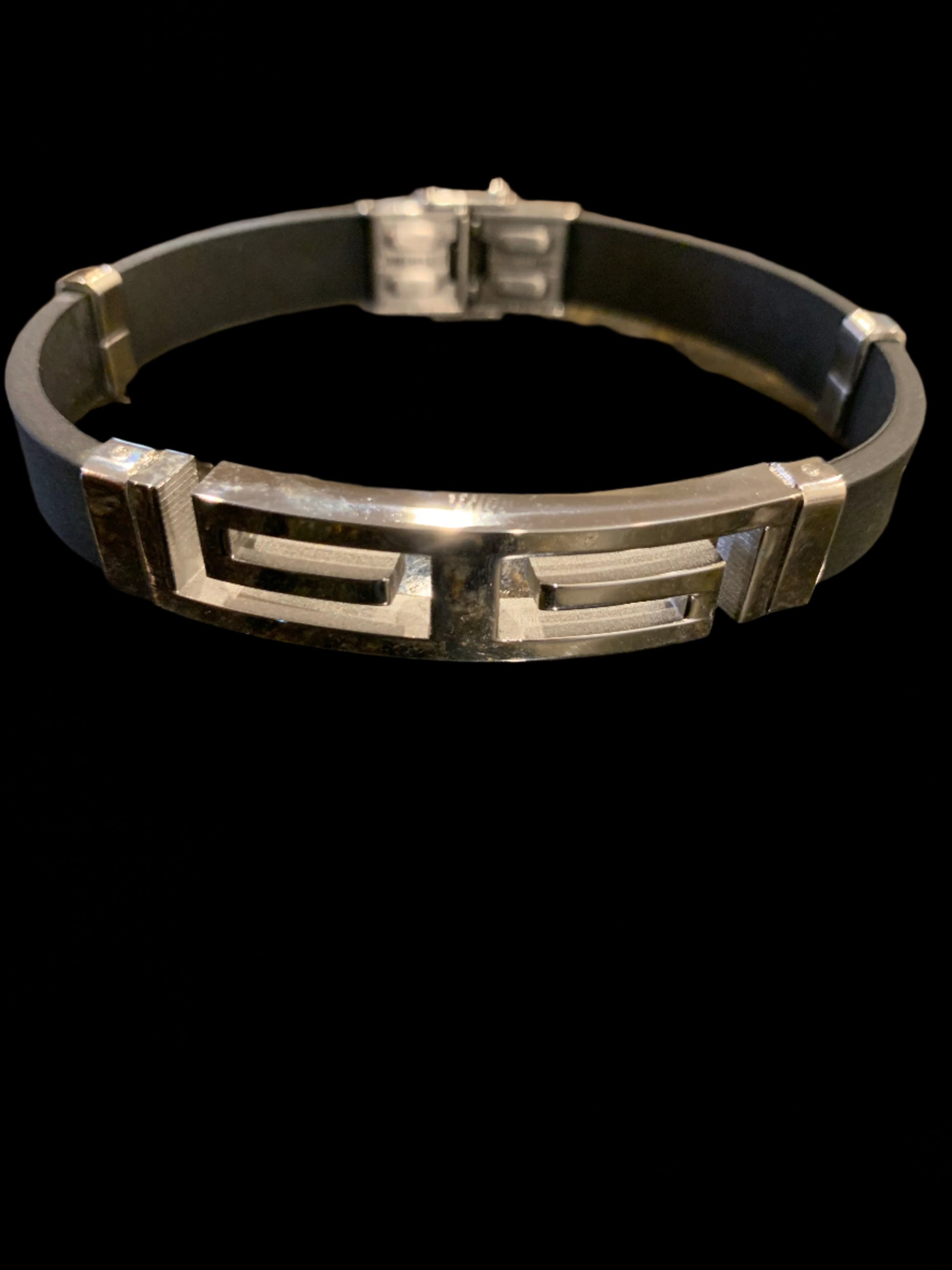This Great Wall design bracelet combines sleek silver detailing with durable black silicone for a modern, sophisticated look. Measuring approximately 8 inches (21 cm), it offers a comfortable fit suitable for most wrists. Crafted for both style and resilience, this bracelet is an excellent accessory for those seeking a subtle yet distinctive statement piece.