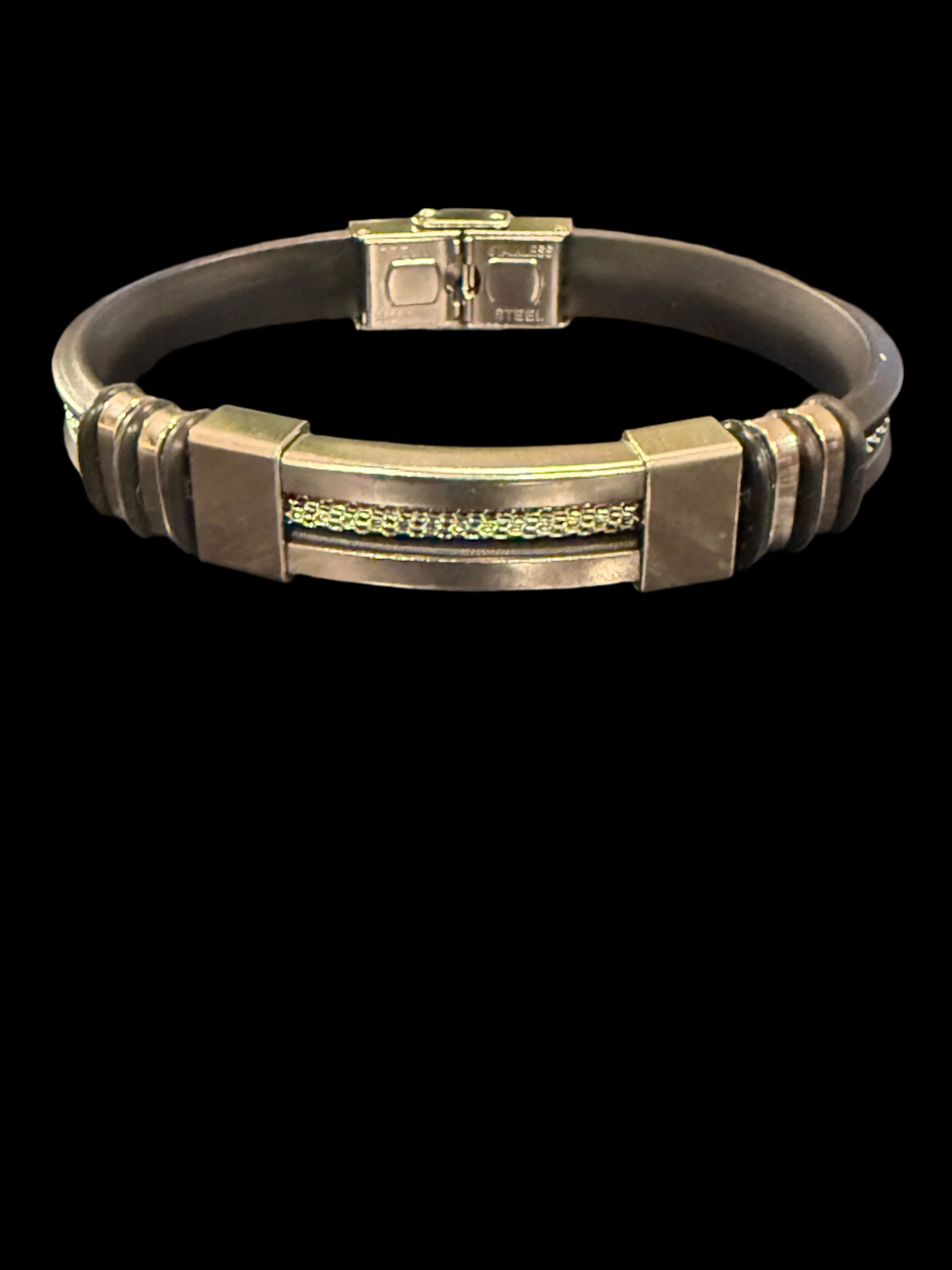 Stainless steel silver silver silicone bracelet